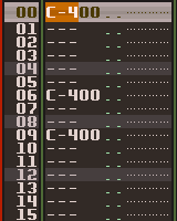 C-4 00 と入力された場合、00 はインストゥルメント番号を表しています。その番号は Instrument List 画面で振り分けられていて、選択したインストゥルメントによって変わります。もちろん、マウスを使って別のインストゥルメントを選択する事は可能ですが、ショートカット・キーを使って素早く切り替えてみましょう。ALT キーを押したまま上下キーを押します。これならキーボードから手を離さずにインストゥルメントの切り替えが可能です。