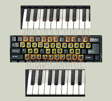 もしあなたがMIDIキーボードを持っているなら、それも同じように使えます。多少設定が必要なので、Attaching a MIDI Deviceのページを見てください。しかし、ここではコンピューター・キーボードを使う事を前提に解説していきます。
